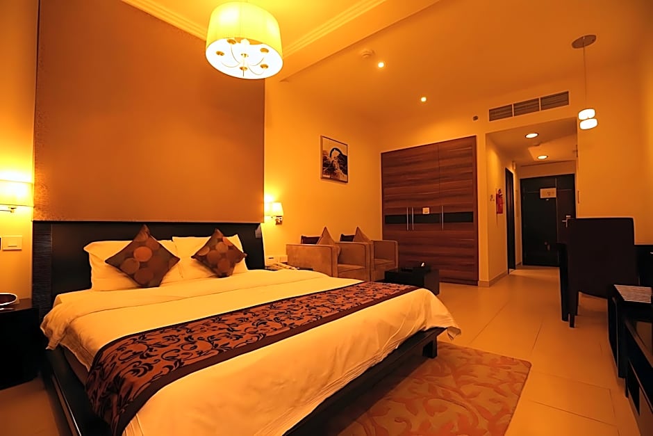 Enjoy stunning city views from this spacious 409 sqft studio with a private balcony. Complete with a fully equipped kitchen, luxurious queen-size bed, and modern amenities including a washing machine and air conditioning, it's the perfect choice for a comfortable stay for 2 adults and 1 child.